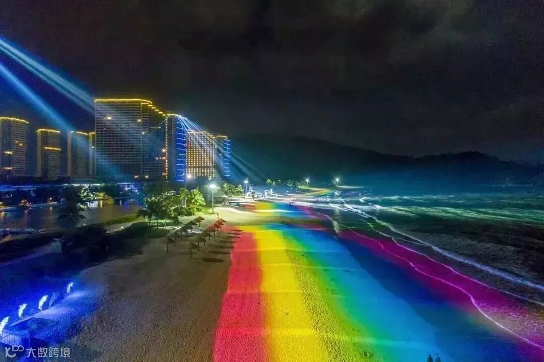 耗资千万打造的“彩虹沙滩灯光秀”,使用超过千组国内外先进灯光设备,在沙滩上投射面积达3万平方米,长约1.5公里的缤纷“彩虹湾”海岸奇观,让您置身奇妙浪漫的滨海通话之中!