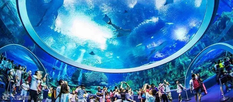 鲸鲨馆高达68m,是破纪录的海洋鱼类展览馆,水体3.1万立方,比原纪录水体为1.5万立方的水族馆水体还超出一倍多。