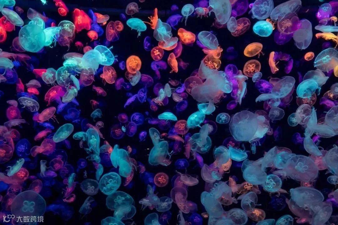 鲸鲨馆内梦幻的水母展区令人留下深刻印象。水母随着灯光变换姿态,流光溢彩,变幻万千,唯美到窒息。随便拍一张都能成为屏保照。