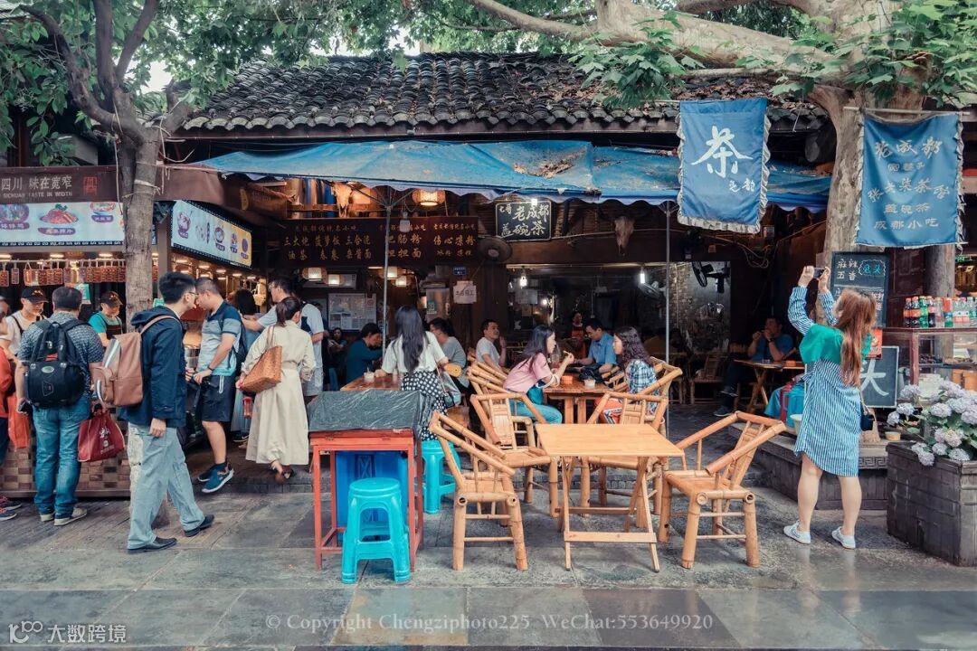 人走在其间,会不自觉地放慢脚步,悠闲自在起来,左瞧瞧,右瞧瞧,巴适的很。