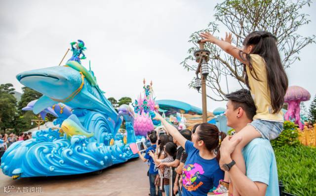 夜晚在烟花表演前的灯光巡游,绝对是视觉上的一次盛宴,伴随着轻快的音乐,各种各样的灯饰花车从眼前开过,让你从早嗨到晚~