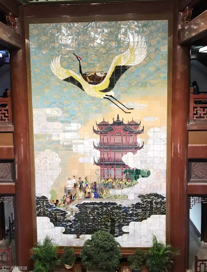 长江奔波,孕于流水中骨子里包容的亿万年精气潺潺地流经黄鹤楼所处的每一寸土地,岁月在历史间沉淀,云纹与黄鹤齐飞、花草与龙凤作陪,这是黄鹤楼的烟波江上景。