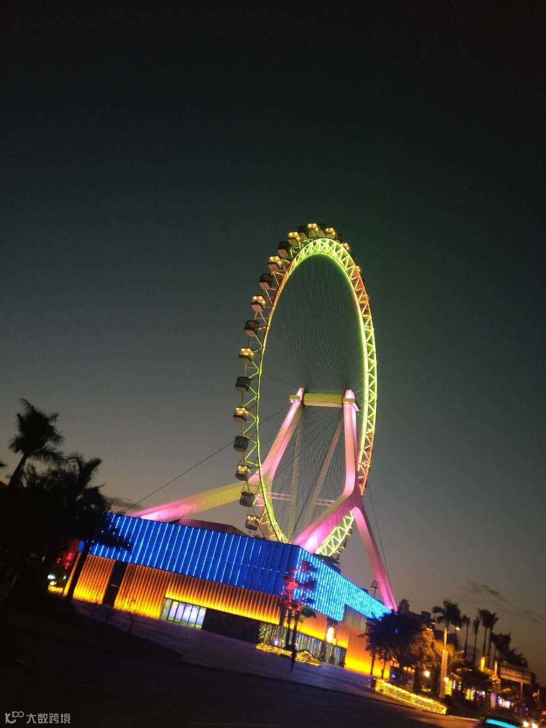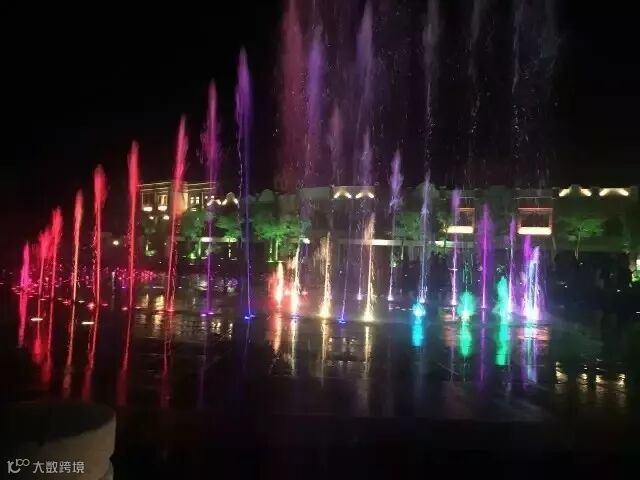 到了夜晚摩天轮下还能欣赏到美轮美奂音乐喷泉