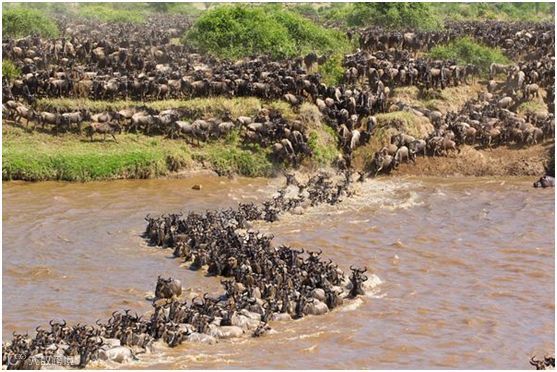 数百万的动物组成声势浩大的队伍,从坦桑尼亚的塞伦盖蒂保护区北上,终点是肯尼亚的马赛马拉国家公园,跋涉3000多公里。