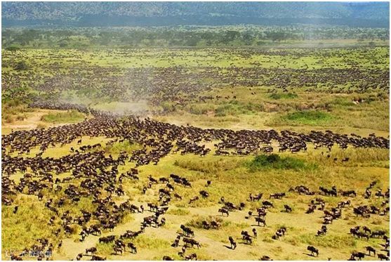 每年的5月中后期开始,非洲塞伦盖蒂国家公园就迎来了它的旱季,公园的水草不能满足大量草食动物的需求,于是草食动物们开始向西北迁徙,只为追赶青草和水源。