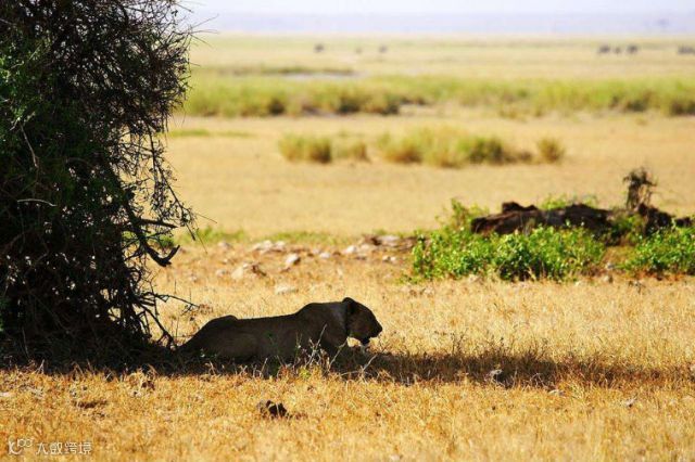 紧跟草食动物之后,便是成群结队你的非洲狮、猎豹、豺狗等凶猛的肉食动物。