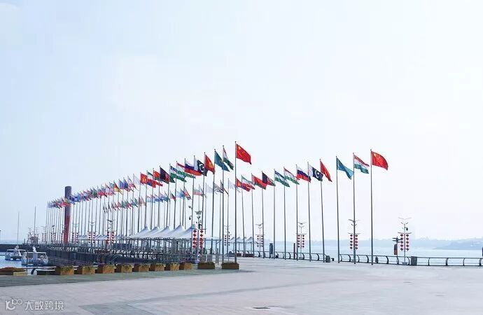 空中还有各国国旗迎风飘扬,壮观大气