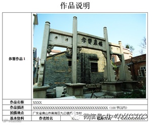 2、作品须附作品描述(限100字以内),并提供参赛作品的名称、拍摄地点、作者姓名、联系方式。