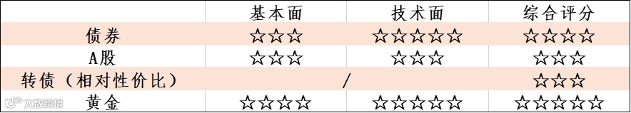 大类资产观点方面,对黄金略偏乐观;对债券偏中性;对A股偏谨慎;对转债资产,从估值维度看偏贵,相对谨慎。