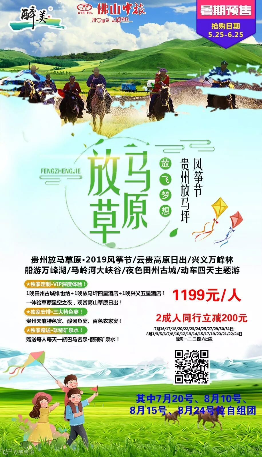 贵州放马坪草原•风筝节、云贵高原日出、兴义万峰林、船游万峰湖、马岭河大峡谷、夜色田州古城 动车四天包列。独家尊享2晚景区酒店《田州古城维也纳+放马坪草原豪华酒店+兴义五星酒店》!
