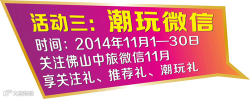 最新消息请密切留意佛山中旅官方微信&每周报纸广告,优惠不止藏在各店里,还能在微信&报纸广告上找到喔。还要犹豫么,这次再抢不上就要后悔到2015年了……快与我们“潮”起来吧!!
