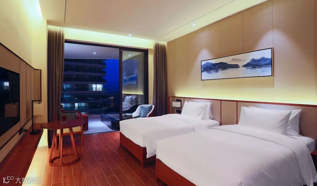 温泉客房的舒适、轻奢的设计理念贯穿于酒店各个空间。