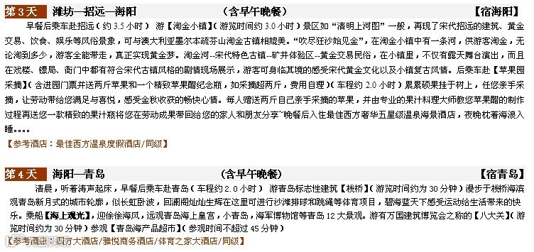 【奢华升级】升级一晚Best western五星级奢华全海景酒店,更有价值158元每位的海水温泉,带给你无尽的享受!【淘宝淘金】 赠送价值80元/人的【淘金小镇】,景区如“清明上河图”一般再现了宋代招远的建筑,还可体验淘金乐趣,圆你黄金梦~~【精彩show】《中华泰山·封禅大典》中国大型山水实景演出创始人——梅帅元先生的制作团队精心打造的一台大型山水实景演出精彩再现了泰山五朝帝王封禅场景,以泰山历史文化为核心,以泰山自然山水为背景,充分展示泰山文化的独特价值与精深内涵。