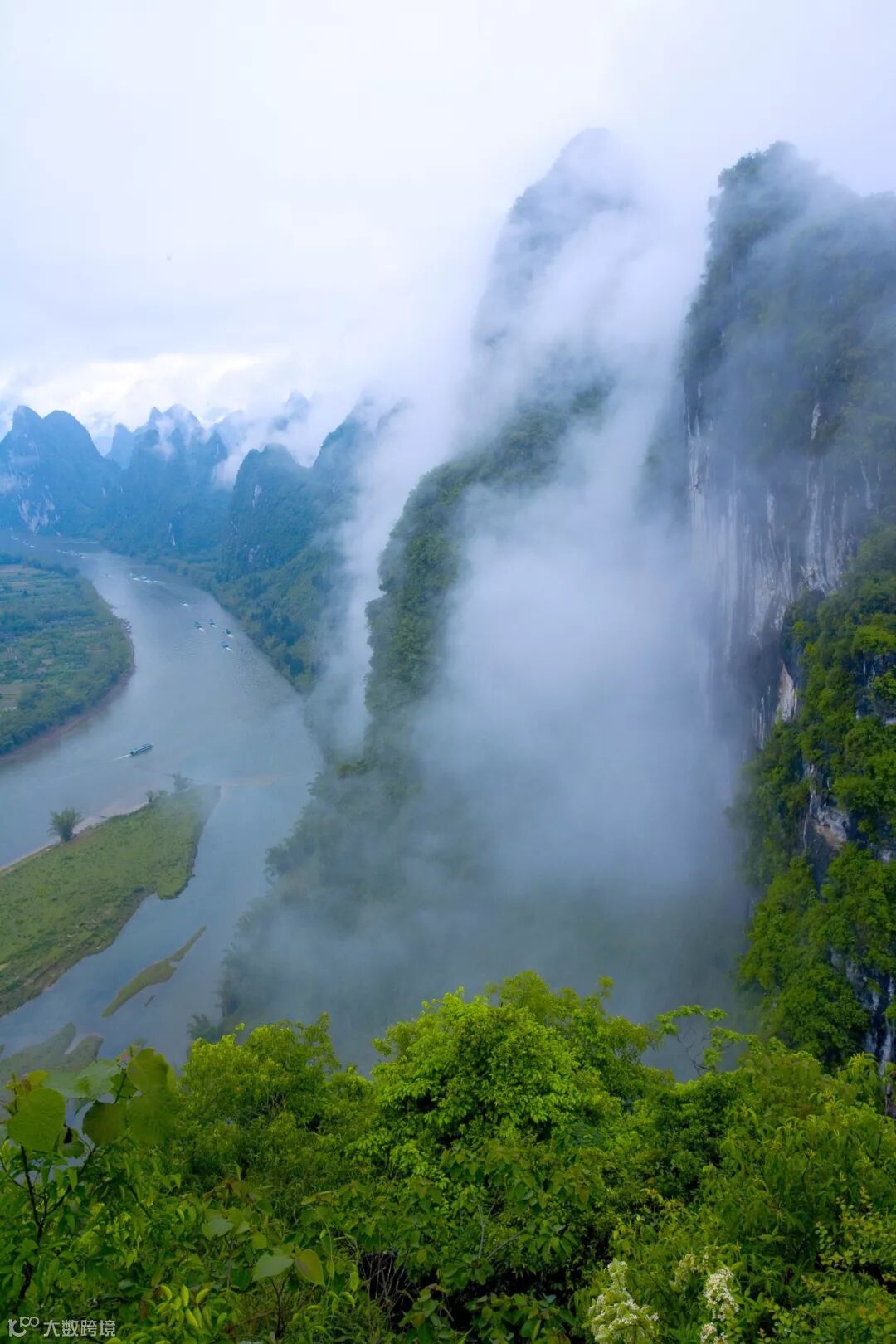 此时的阳朔山水,就像一个身披雾纱的神秘女子,
