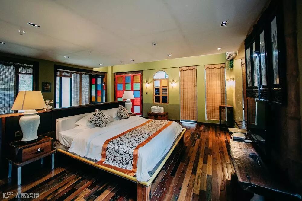 可以看到近处的山景,整间房的地板用船木打造,赤脚走在上面都很舒服,而且就好像同自然做最亲密的接触呢!