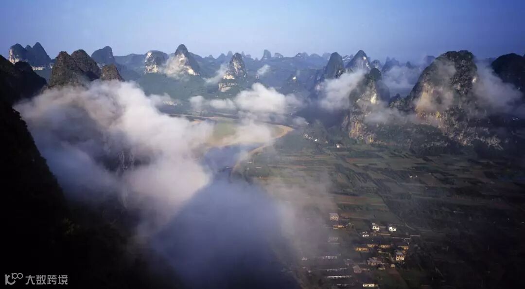 云雾穿流在村落之间,雨幕笼罩在江河之上,