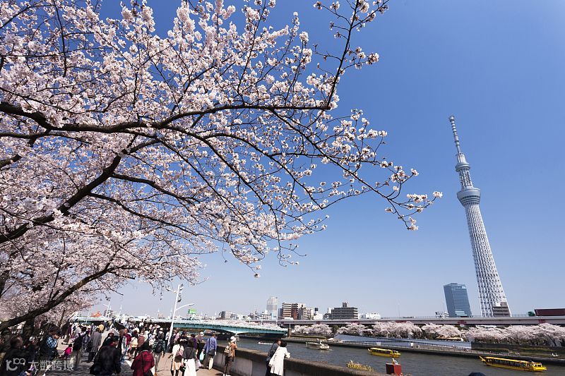 浅草隅田公园的樱花长廊被评选为关东地区最想去的赏樱场所第2名!漫步在樱花路,能看到不远处的东京晴空塔,异常浪漫。