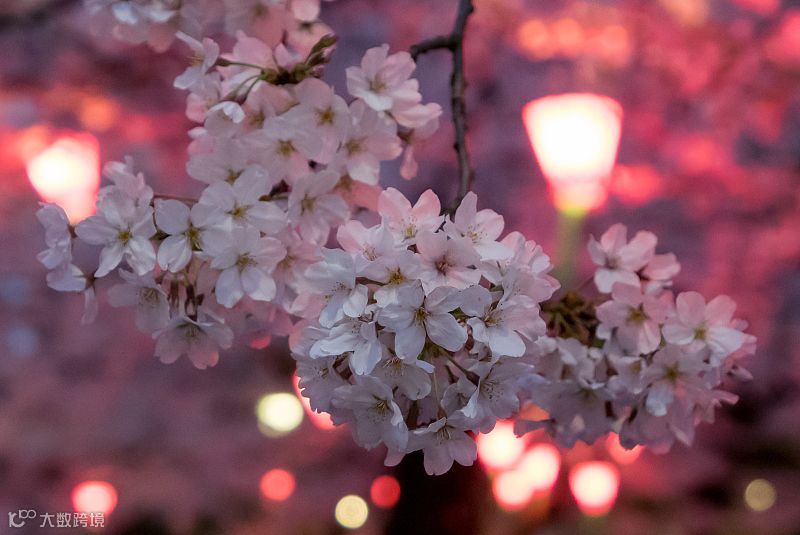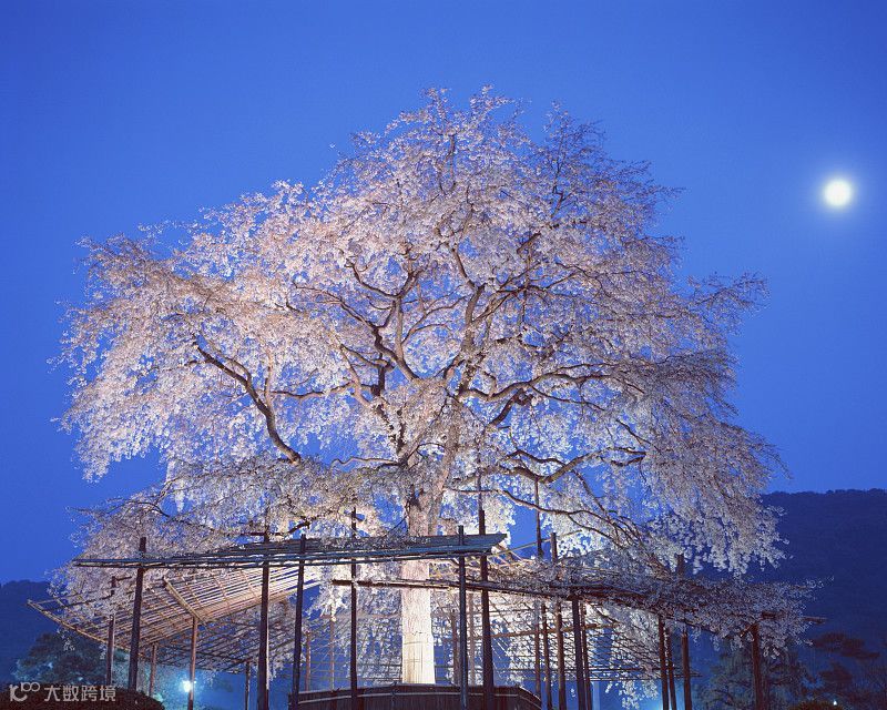 每到四月前后,周围的群山被樱花逐渐染成粉红、粉白的自然色彩,夜间点灯之后更形成梦幻般的夜樱唯美景色。