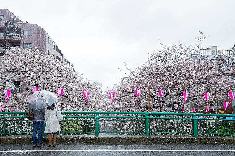 目黑川是一条流淌于涩谷区和目黑区之间的河流,河两侧的樱花一同绽放,交相辉映,一眼望去没有尽头,配上红色的和式木桥美不胜收。