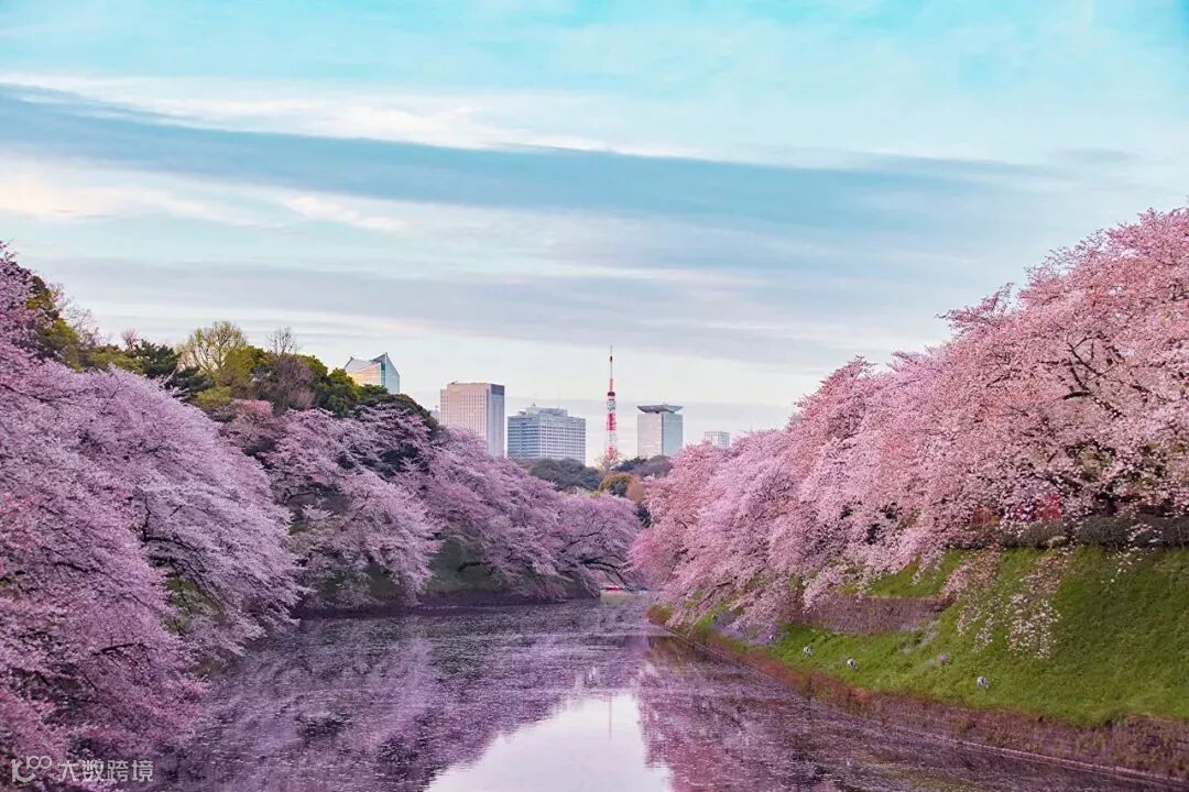 春天的东京被粉樱镀上了一层浪漫的色彩,既能看到道路两旁的樱花枝干交错搭织成一条梦幻的“樱花隧道”,也能看到被飘落的樱花瓣染成粉色的河川美景。