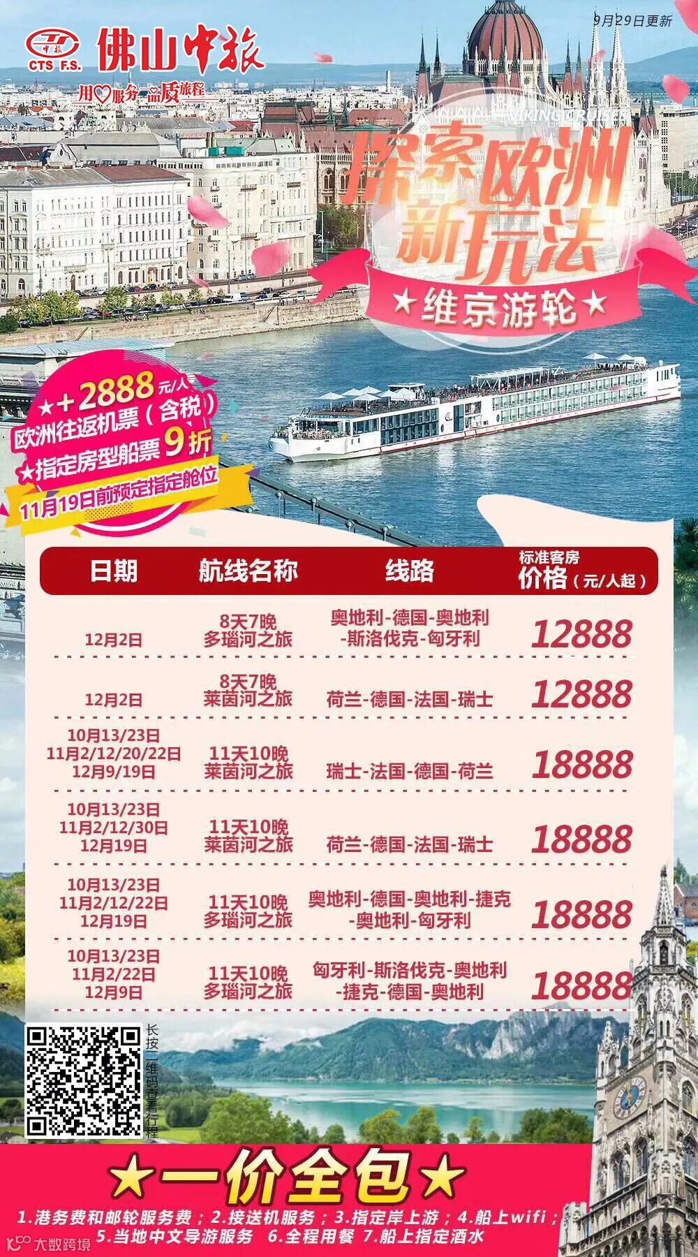 预订10月至12月底出发的所有内河游轮航线,