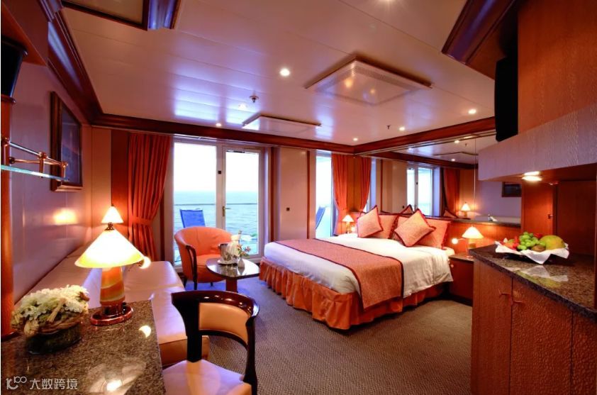 套房客人特享超大客舱空间,全天24小时私人管家,免费客房早/中/晚餐送餐服务并赠送欢迎香槟果篮与悠闲下午茶。除此,还可享受尊荣优先登船,并邀请参加船长鸡尾酒派对与船长合影一张!