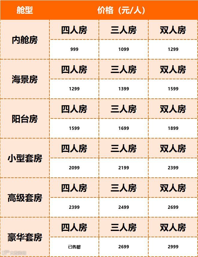 2、 阳台房立减300元/舱 (仅限20间哦)