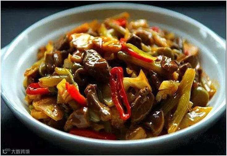 农家山水豆腐、酸菜炒鸡杂、野生云耳蒸鸡