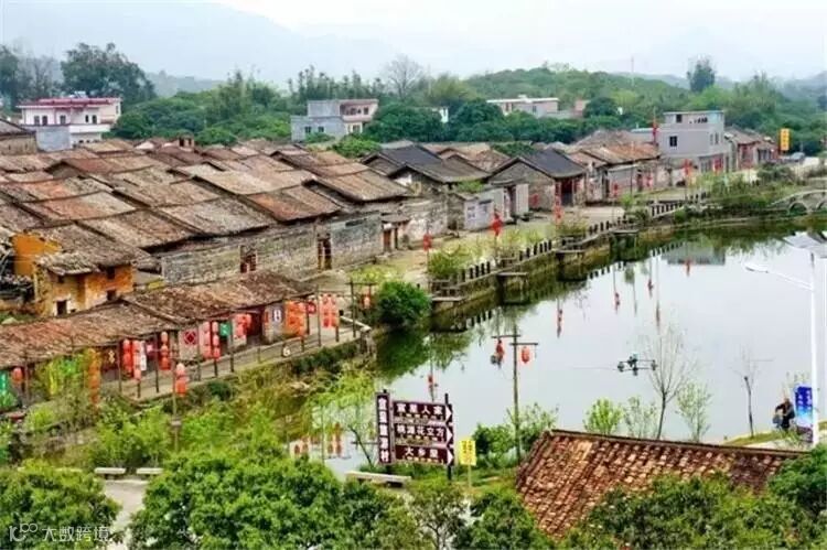 来到从化宣星古村,村前是一眼硕大的池塘