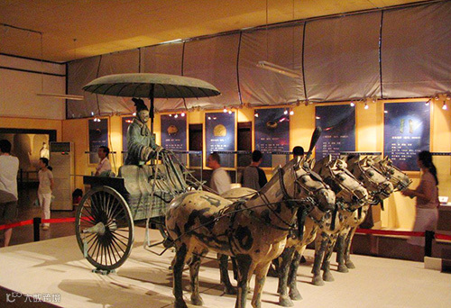 D4、华山-兵马俑-西安(西安市区距临潼50KM 1H ) (早中餐)宿:西安 早餐后,赴临潼,参观被誉为“世界第八大奇迹”的【兵马俑博物馆】(参观2小时),后乘车返西安,游览钟鼓楼广场,回民小吃一条街(晚餐自理,约2小时)。后入住酒店。