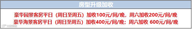 *周末及节假日升级房型入住需叠加加收
