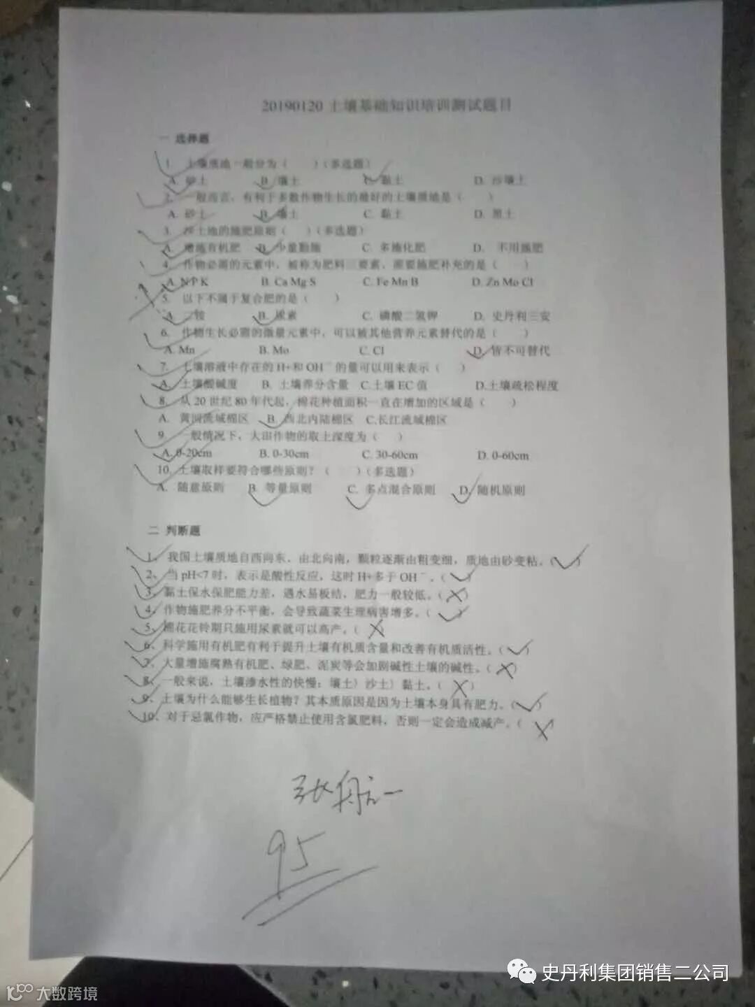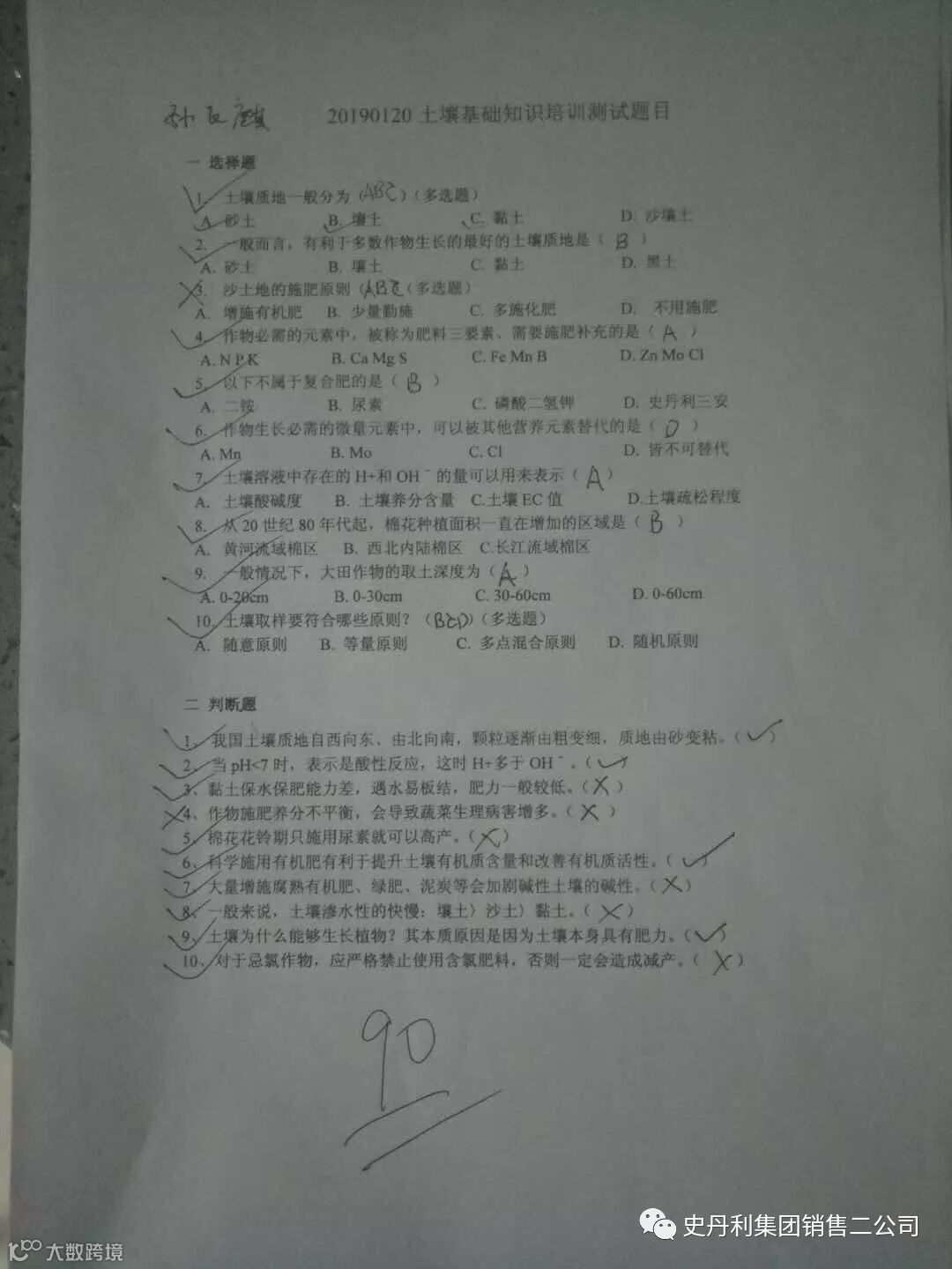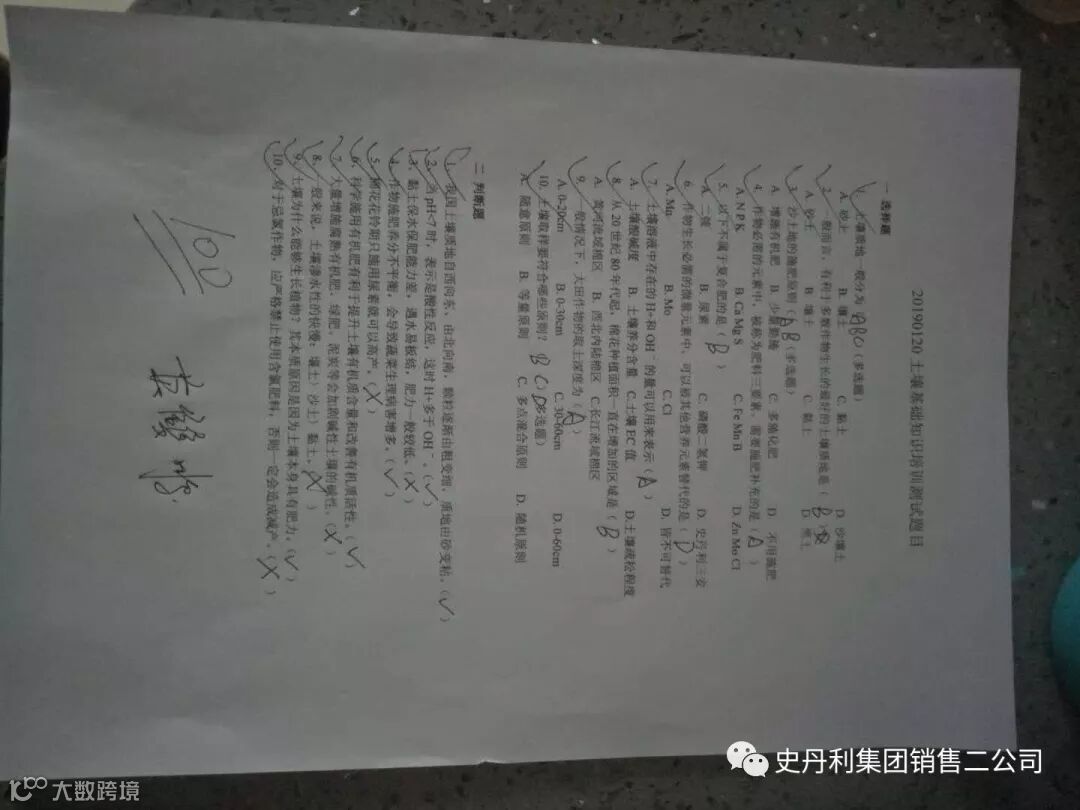 下午的会议由农技部老师对全体北疆精英进行了远程培训,根据工作安排,农技部王贵嵩老师对全体北疆精英进行了远程农化知识培训,精英们认识学习并做好笔记,培训结束后,为了检验大家对知识的掌握程度,进行了一次摸底考试,考试结束后袁总亲自批阅,成绩非常喜人,其中三位销售精英取得了满分,合格率高达90%以上,付出就有回报,北疆的精英们棒棒哒!