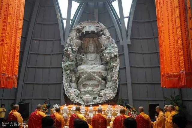 翡翠观音圣像由整块重逾百吨的翡翠原石,