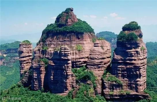 在丹霞山境内,有大小石峰、石墙、石柱、天生桥共计680多座;丹霞山上还有三个高峰,远看这三峰高耸对峙......