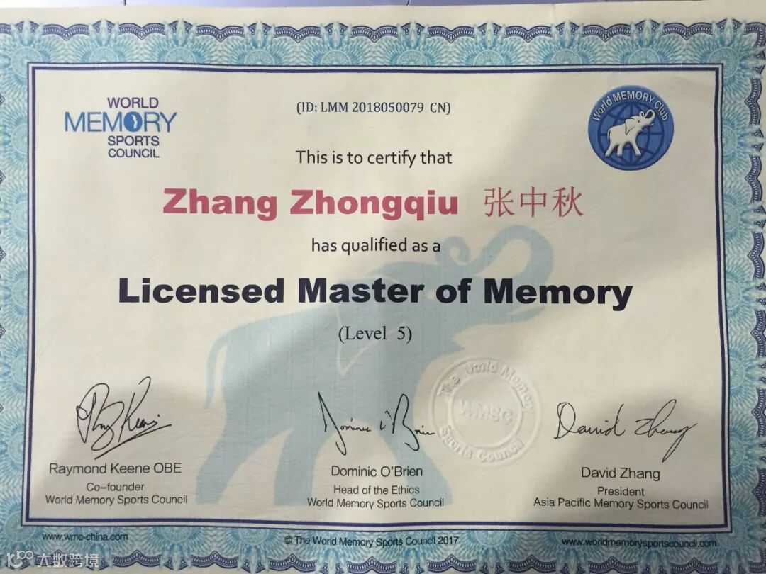 世界记忆大师证书
