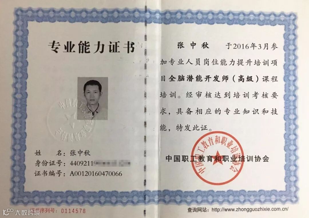 全脑潜能开发师证书