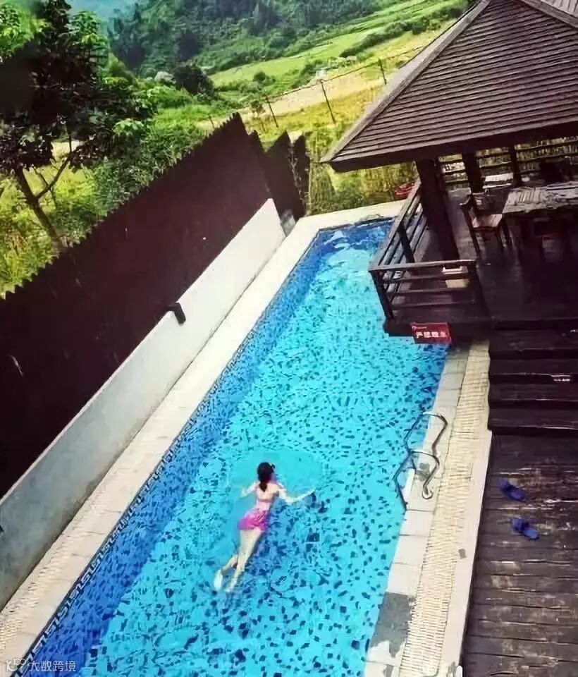 无边温泉池,仰看乡村梯田
