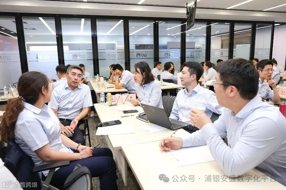 各组成员围绕财富管理和客户经营在网点的实践、稳健类客户的公募基金配置两大主题展开热烈讨论,并从产品介绍、资产配置、客户管理等多个维度精心构建汇报材料,由各组代表统一进行结果报告。丰富的课程内容和创新的形式极大地激发了大家的互动热情,让知识点更加深刻地印在参训人员的心中。课间休息时间,来访人员参观了浦银安盛基金数智空间、直播间等,并留下了珍贵的合影。