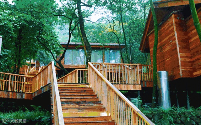 拾级而上,看到一座一座的小木屋