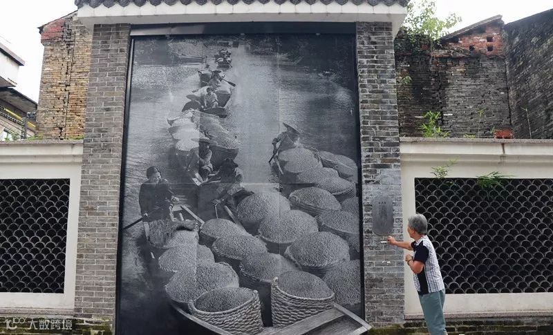 在老街巷口处,一幅壁画“复刻”了昔日罗行丰收情景。