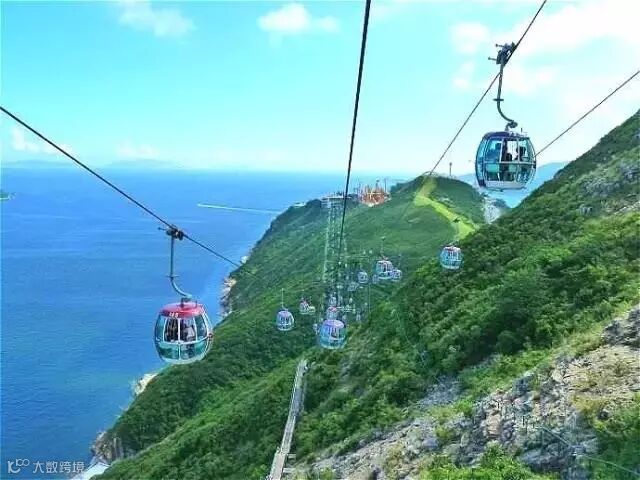 乘客可以在海风中缓缓攀上绿油油的山坡,尽情欣赏海天一色的美景,一览无遗地鸟瞰海洋公园各个景点,好好计划下一站的行程。在这里记得要和家人好友拍照留念,珍藏美好一刻!!