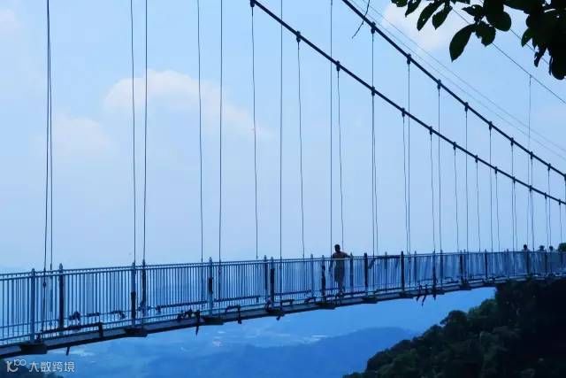 ↑云门山玻璃桥是目前广东省规模最大的全透明高空景观玻璃桥,