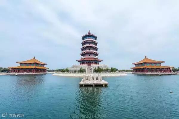 从空中俯瞰,这个景区呈葫芦状,建在海中