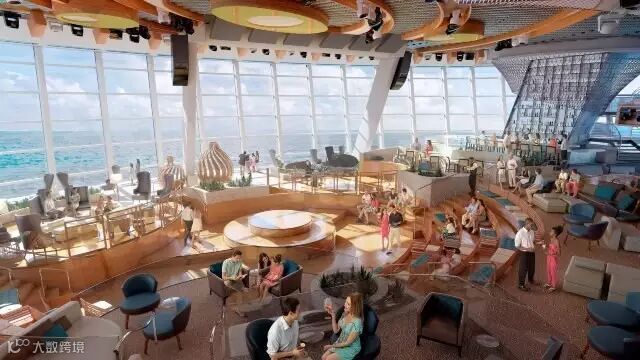大名鼎鼎的北极星,是船上的海拔最高点,是“皇家”的一大特色亮点,可360度旋转的吊杆手臂,宝石形的玻璃舱将旅客送到离海平面91米的全新高度,俯瞰一切。