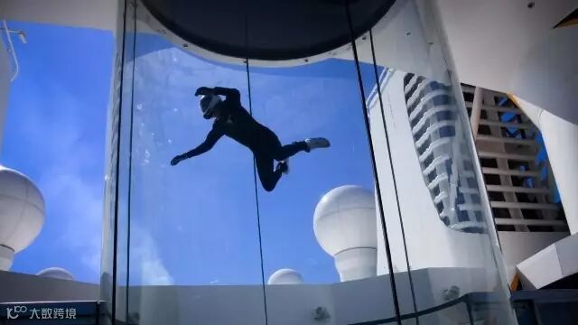 “甲板跳伞”是赞礼号的又一个特色项目,在邮轮上体验“飞翔”业内首创,是一个安全、可控的体验平台,可让旅客享受到垂直降落的刺激和跳伞的快感。