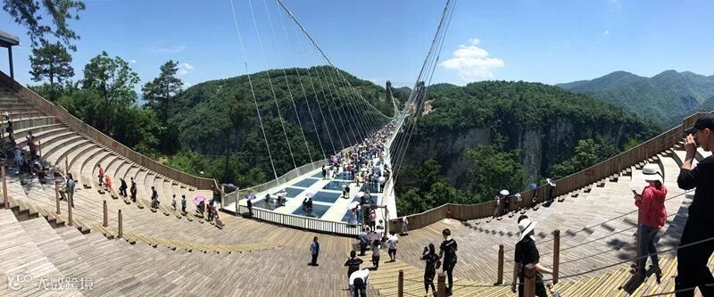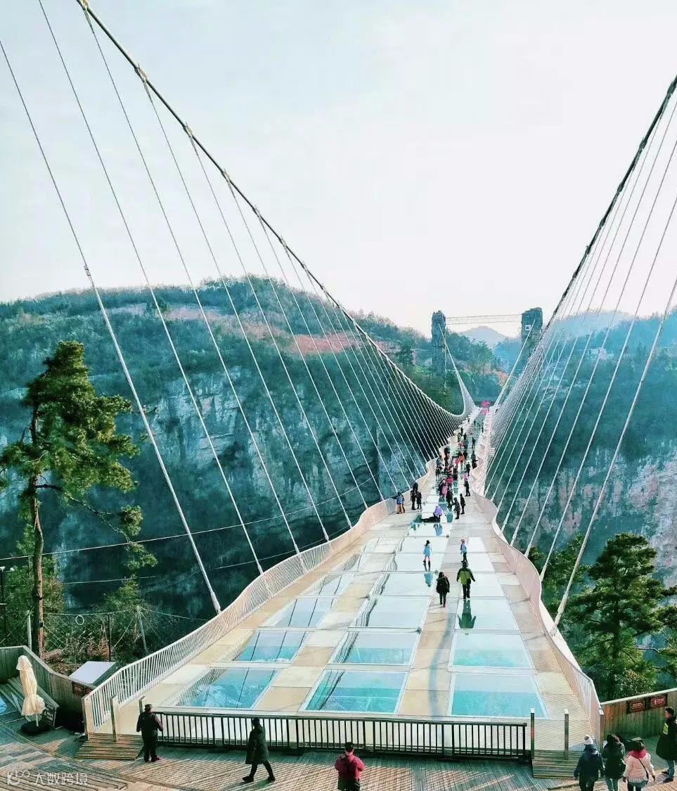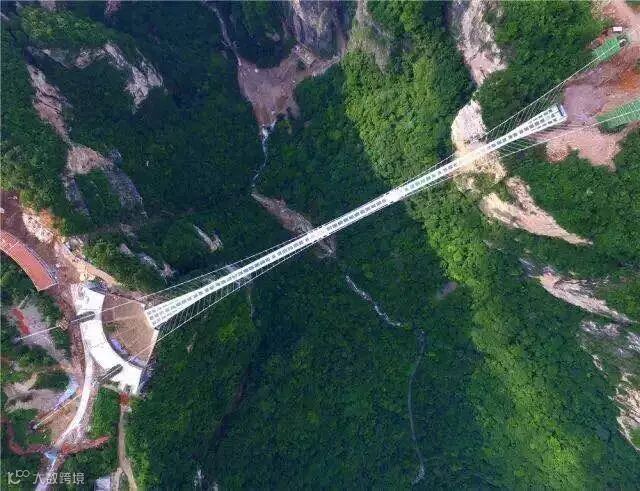 这条玻璃桥直接横亘在张家界大峡谷上,主跨430米,一跨过峡谷,桥面长375米,宽6米,桥面距谷底相对高度约300米。