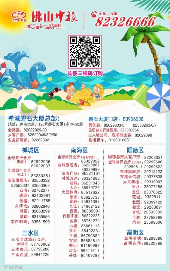 咨询或预定可联系您身边的佛山中旅营业部哦
