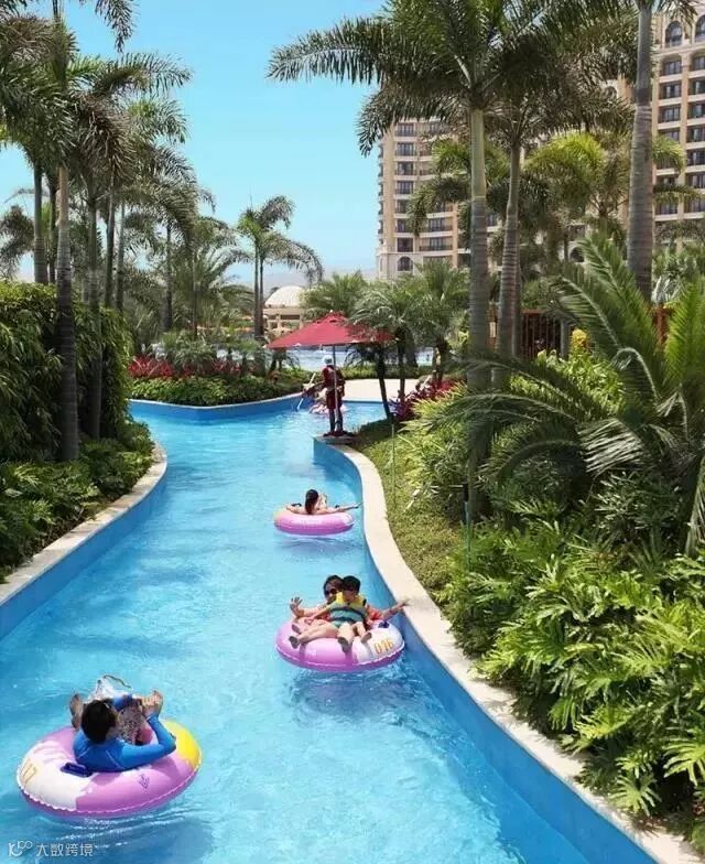 漂流河也绝对不容错过!坐在浮圈上,悠然自得的沿着260米的漂流河,随着水浪,从室内至室外,花园美景尽收眼底。