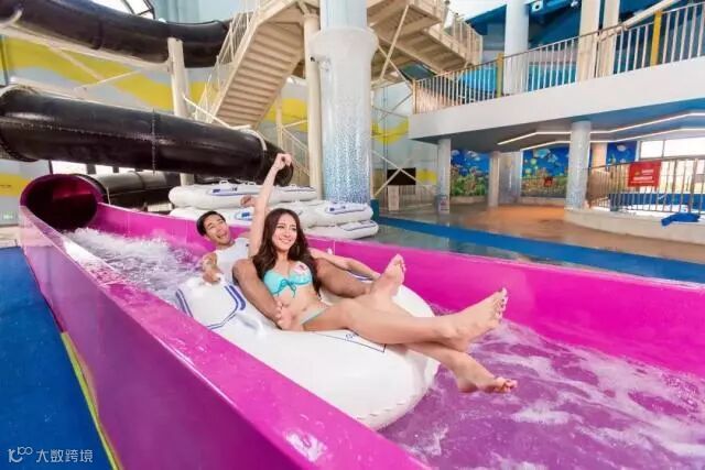 由国际知名的加拿大白水公司设计的室内水上乐园,最有玩头的就是三条曲线和直线滑道了。