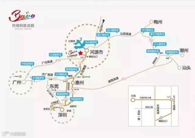 佛山:季华东路——佛山一环高速——广州环城高速——沈海高速广州支线——华南快速——S2广河高速——G25长深高速——205国道——河源巴伐利亚庄园